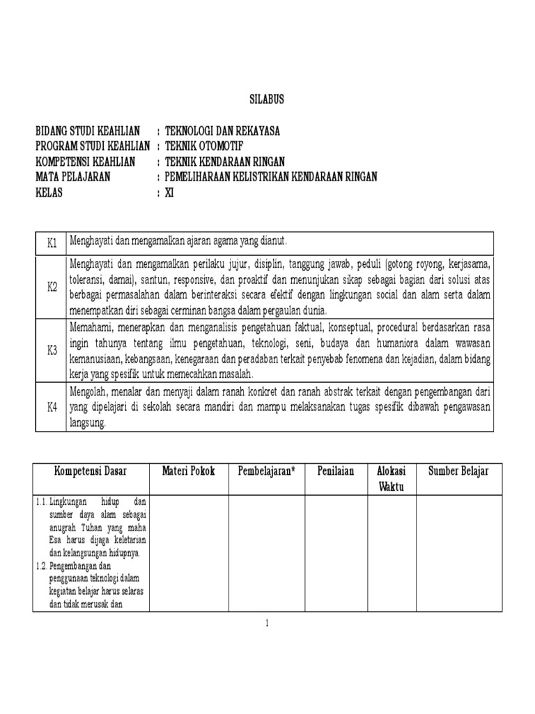Pembelajaran teknologi dalam dunia pendidikan di smp termasuk dalam mata pelajaran teknologi informasi dan komunikasi tik. Untuk selebihnya saya persilahkan kepada bapak atau ibu guru sekalian yang akan memakai silabus ini untuk dicopy dan diedit sesuai keperluan karena memang silabus ini tidak berisi hak paten. Cdr rpp mak revisi teranyar sudah mengikuti anjuran menteri sesuai dengan permendikbud teranyar dengan format 1 lembar untuk kelas 10 xi dan 12 sudah lengkap dengan silabus, rpp, prota, promes, kkm, kikd dan sebagainya Silabus teknik kendaraan ringan kurikulum 2013 revisi 2017 guru ilmu sosial. Buku guru dan buku siswa untuk jenjang smk kelas 10 jurusan teknik otomotif ini terdiri dari buku teknologi dasar otomotif, pekerjaan teknik dasar otomotif dan teknik dasar listrik otomotif baik untuk semester 1.
